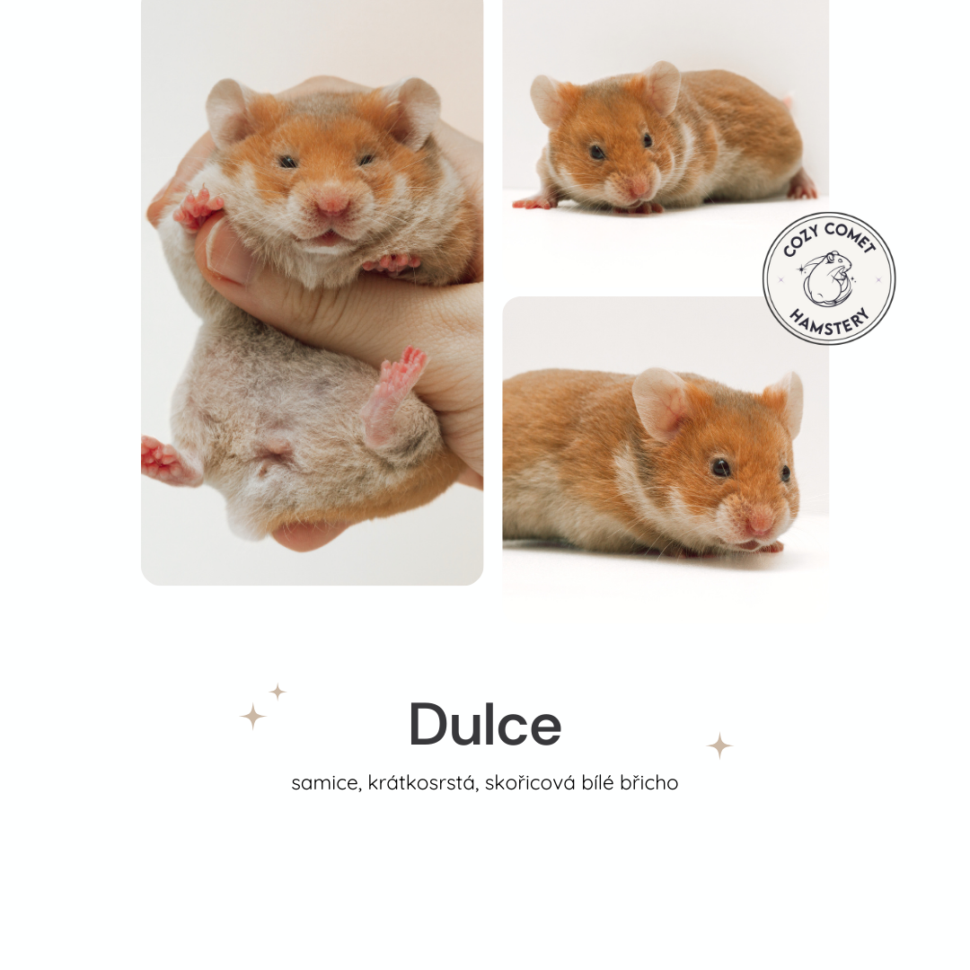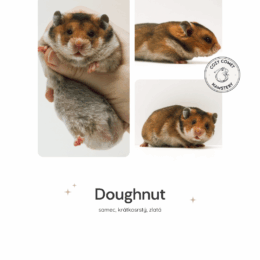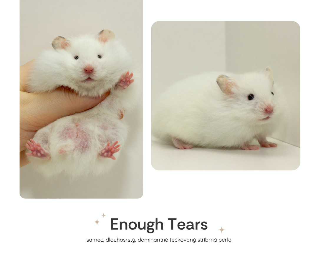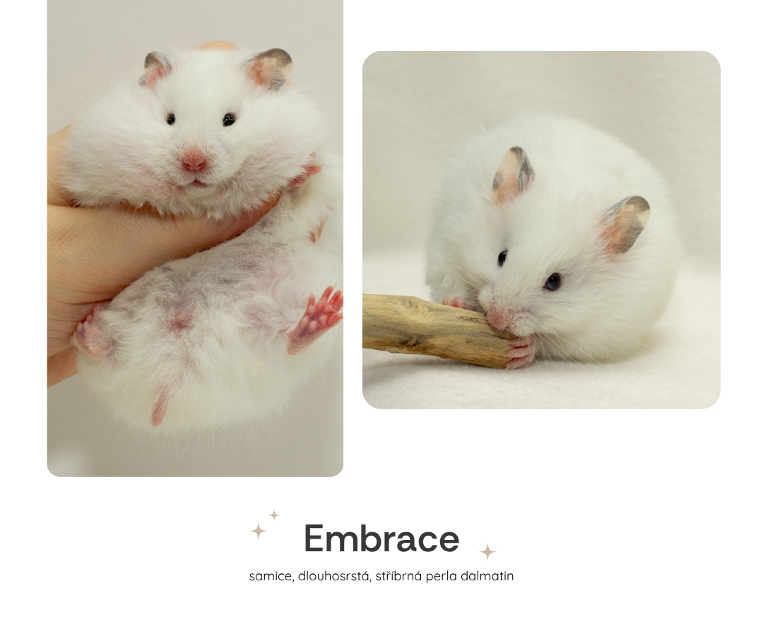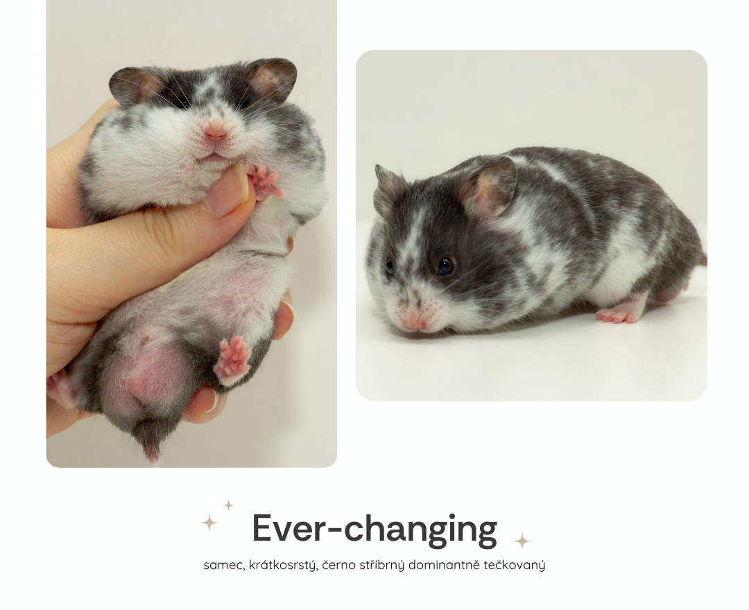 Zde najdete naše poslední vrhy seřazené od nejnovějšího včetně informací o volných mláďatech. O něco níže naleznete všechny naše křečky, ať už chovné, nebo již v zasloužilém "důchodu".